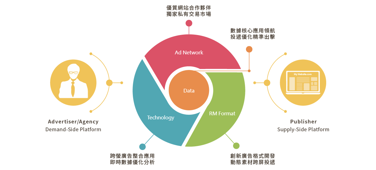 代理 Google 多元廣告產品與服務,協助網站主 Google Ad Manager 操作,並透過 Ad exchange 廣告方案導入,首選交易(Preferred Deal)能快速媒合優質廣告版位,創造網站收益。