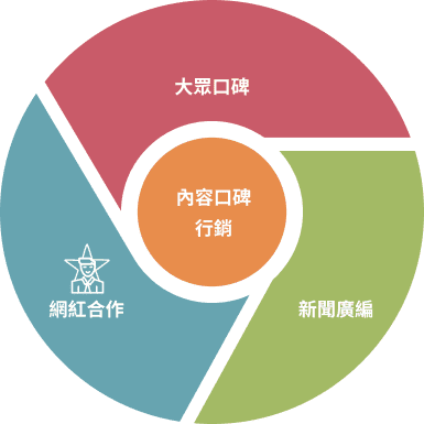 結合大眾口碑、網紅合作、新聞廣編串連,幫助品牌在消費者心中建立信任,擴大市場聲量,驅動實際轉單!