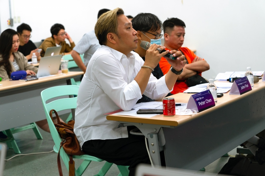 決選評審於QA環節中,認真給予參賽團隊反饋與建議。(左起:成果行銷執行長陳建勳、PicCollage CEO / Co-founder John Fan、數位時代創業小聚社群行銷總監陳凱爾)